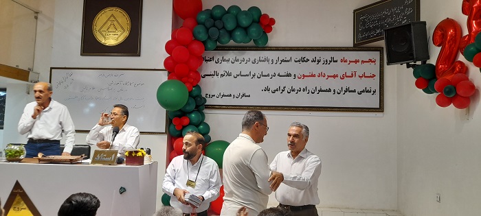 با سلام و تشکر از کمیته تشریفات بازهم به نوبه خودم این روز عزیز را خدمت جناب مفتون شاگرد خلف مهندس دژاکام و بنیان گزار درمان بر اساس علایم بالینی تبریک و تهنیت عرض نموده از خداوند متعال سلامتی و توفیق روز افزون بیشتر ایشان را در مسیر الهی که برگزیده اند خواهانم سایشان بر سر ما و تفکر سروج مستدام باد ،